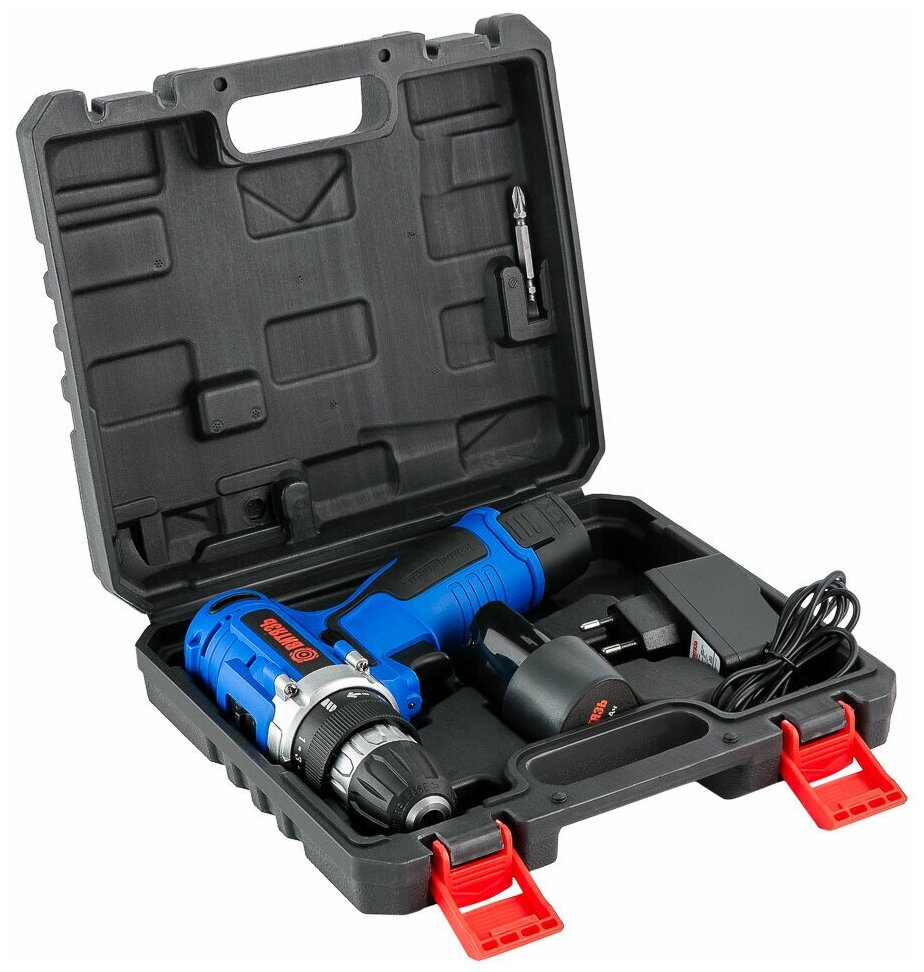 Дрель шуруповерт аккумуляторная Витязь ДА-110-2 подсветка, реверс, сверление по дереву и металлу, 12 В, 2 Ач, 2 скорости, 2 АКБ Li-Ion, пластиковый кейс, быстрозажимной патрон, защита от перезарядки