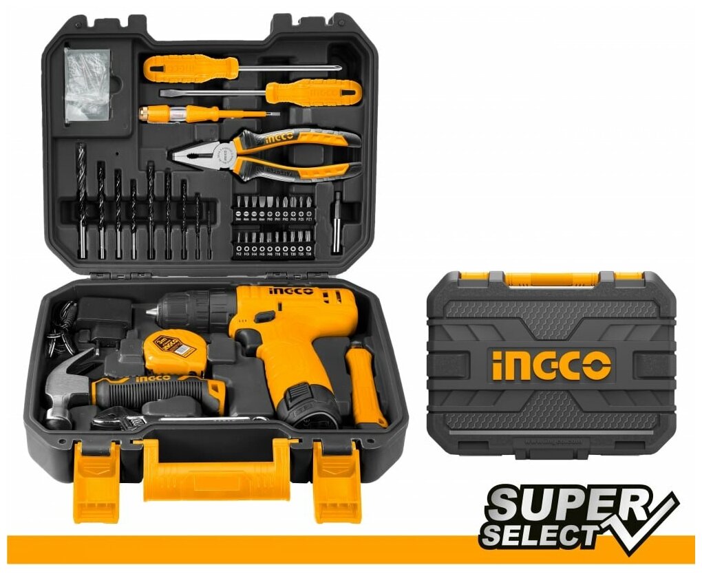 Дрель / шуруповерт Набор: Шуруповерт 12В, Ручной инструмент 81 предмет INGCO HKTHP10811