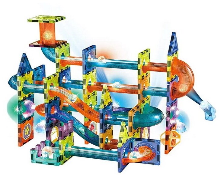 Лучшие цены. Магнитный конструктор – развивающая интерактивная игрушка-трансформер для мальчиков и девочек, отличный вариант для опытов и экспериментов для детей (головоломка). Занимательная игра отвлекает от гаджетов. Развивающий магнитный светящийся конструктор состоит из 110 деталей, из которых легко собрать многоуровневую горку, по которой будут скатываться шарики с LED-подсветкой. Магазины в вашем городе.