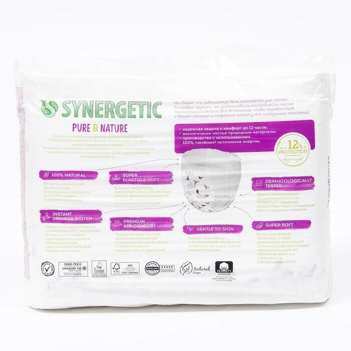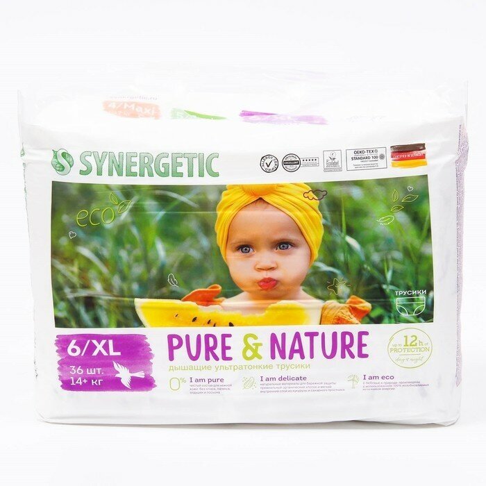 Подгузники Трусики-подгузники Synergetic Pure&Nature, Ультратонкие, дышащие, размер 6 XL, 14 кг+, 36 шт (63483)