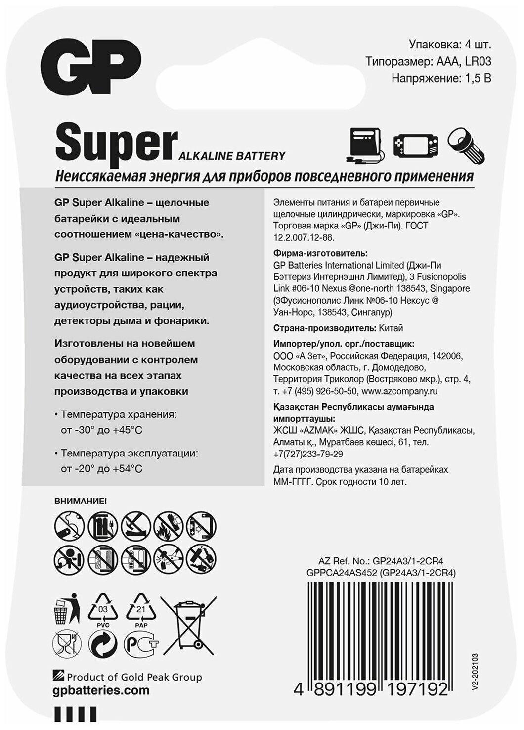 Батарейка GP Super 24A-2CR4 LR03 AAA BL4