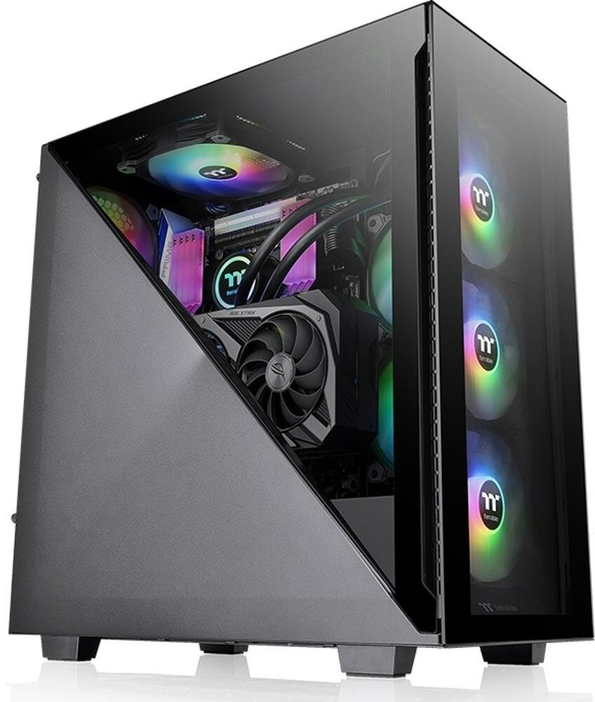 Лучшие цены. Корпус формата mid tower с тремя предустановленными вентиляторами 120мм ARGB 5V и боковой панелью из закаленного стекла в форме треугольника. Корпус Divider 300 TG ARGB Mid Tower Thermaltake представляет новую серию корпусов Divider в которой совмещаются строгий дизайн, практичность и возможность по кастомизации. Основная особенность корпуса Divider 300 TG ARGB - это две симметричные треугольные панели сбоку, одна из которой стальная, а другая из закаленного стекла. Магазины в вашем городе.