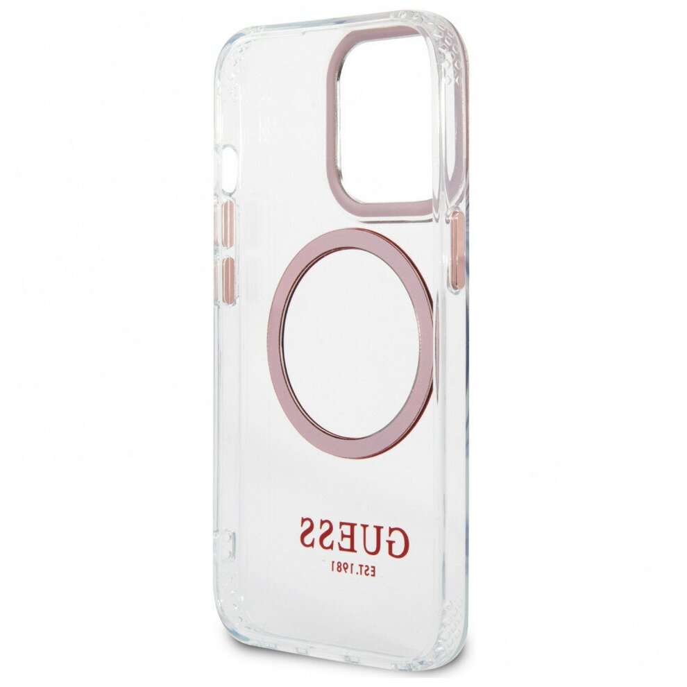 Чехлы для мобильных телефонов Чехол Guess Metal outline Hard для iPhone 13 Pro, прозрачный/розовый (MagSafe)