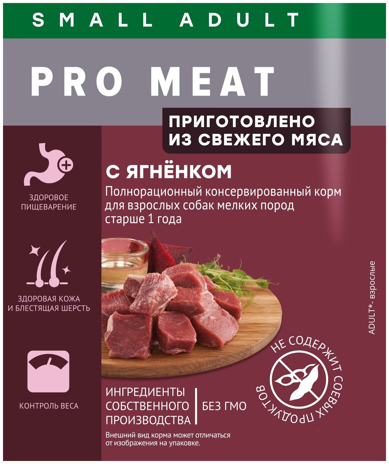 Мираторг PRO MEAT SMALL ADULT для взрослых собак маленьких пород с ягненком (85 гр х 24 шт)