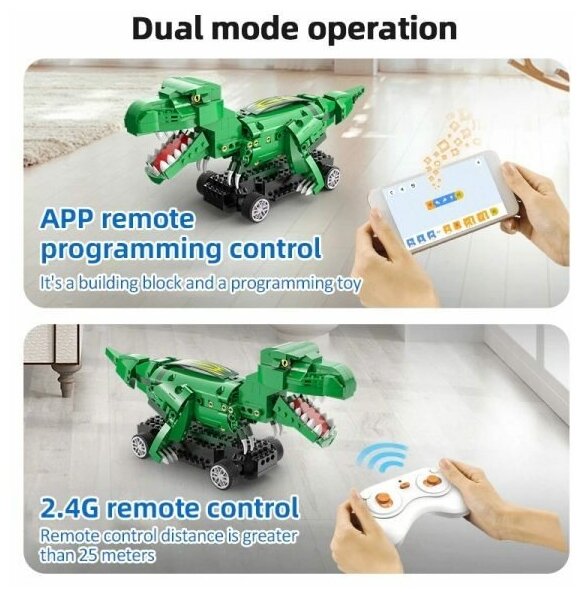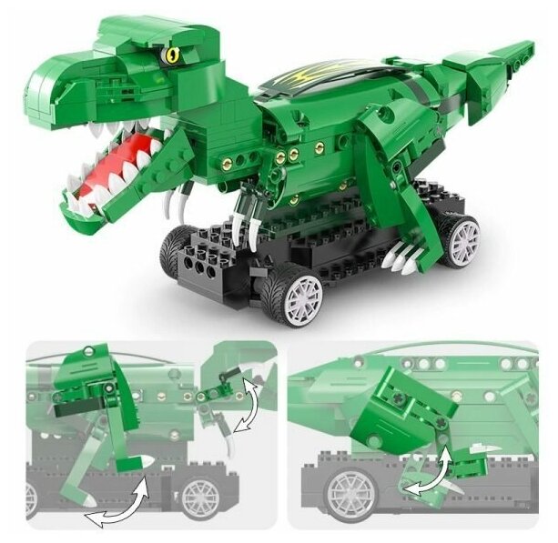 Лучшие цены. Радиоуправляемый конструктор "Мир динозавров" от CADA представляет собой набор для сборки Тираннозавра из 343 деталей. Лапы динозавра двигаются при движении, а внушительный внешний вид никого не оставит равнодушным. Управлять моделью можно как при помощи пульта управления, так и приложения на телефоне, при этом можно выбрать один из нескольких вариантов управления. Конструкторы – одни из самых полезных детских игр. Магазины в вашем городе.