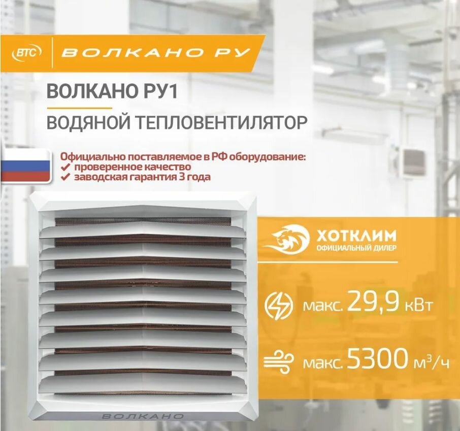 Водяной тепловентилятор Волкано РУ Мини АС 41 190 ₽ Подробнее