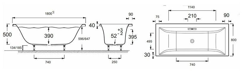 Лучшие цены. Тип: пристенная; Материал: акрил; Объем, л: 260; Ширина, см: 80; Высота, см: 64; Длина, см: 180. Магазины в вашем городе.