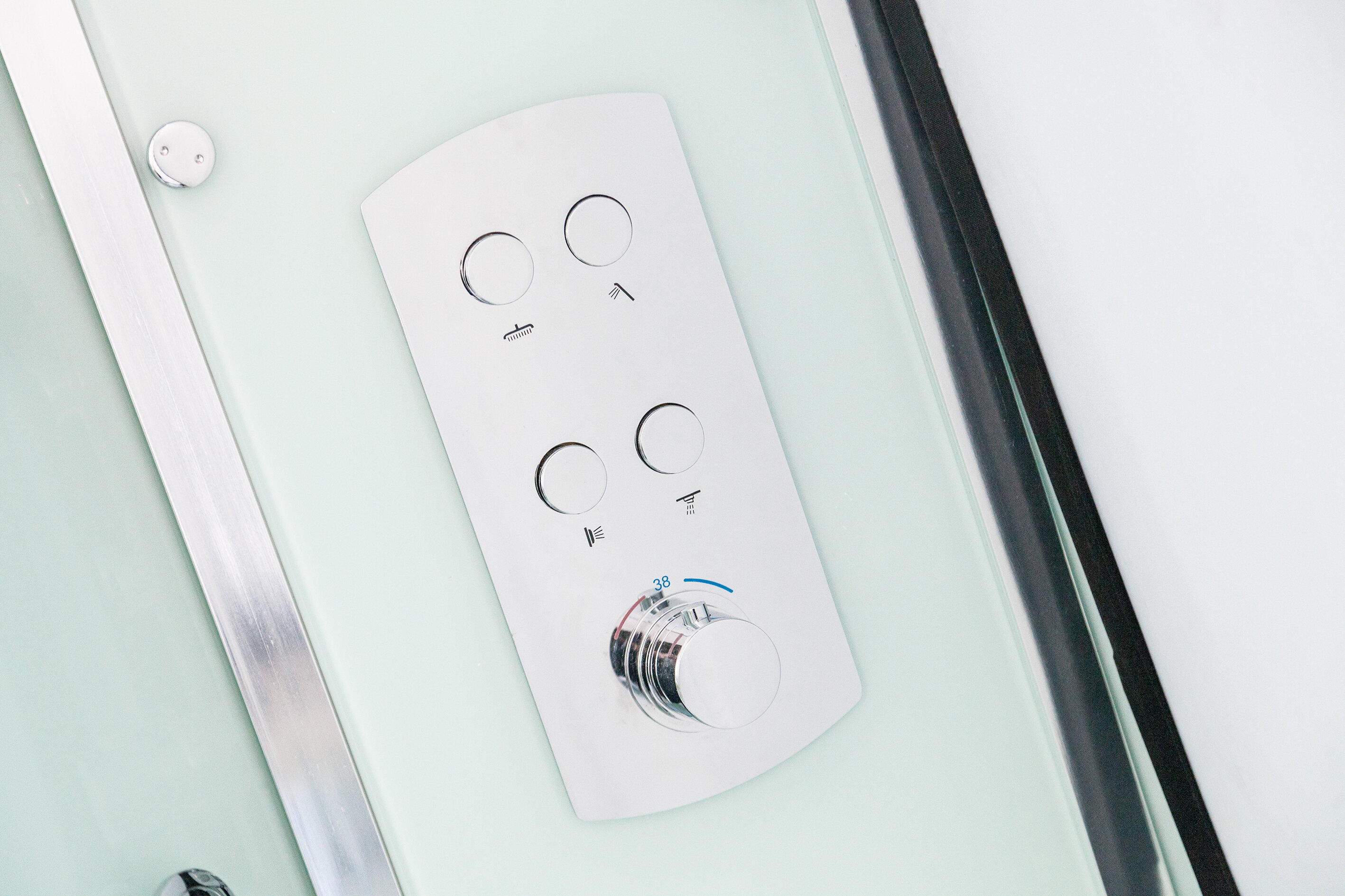 | Гарнитур и возможности | душевая лейка / встроенное радио / дисплей / электронное управление / подсветка панели |