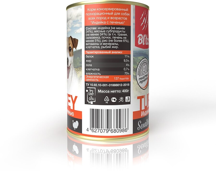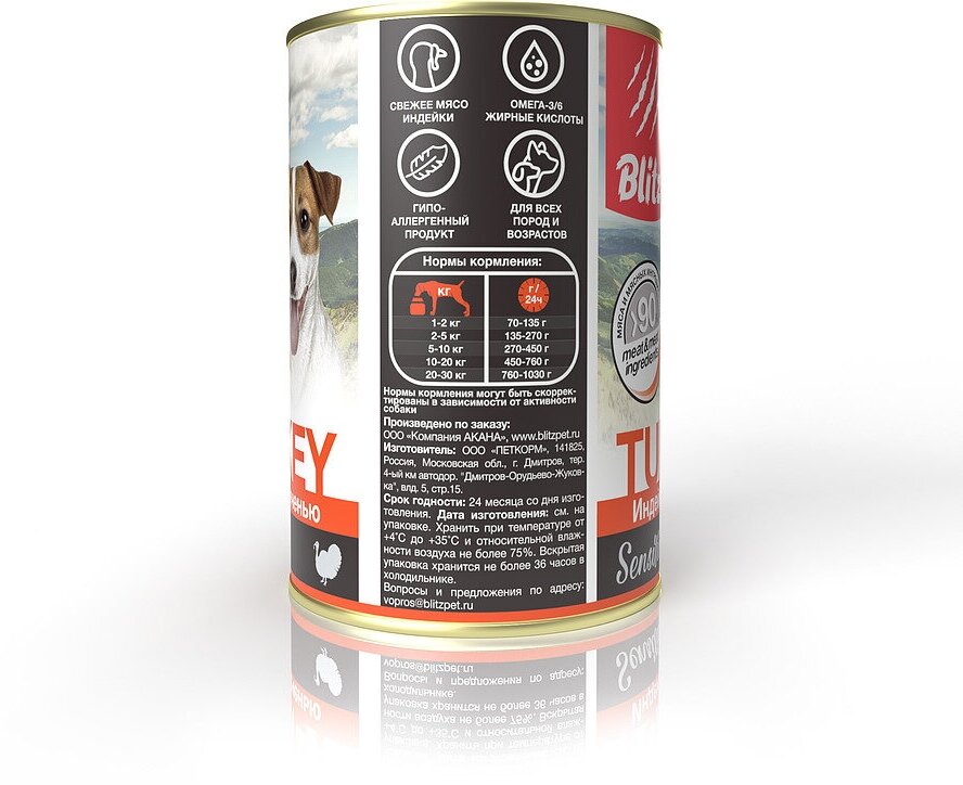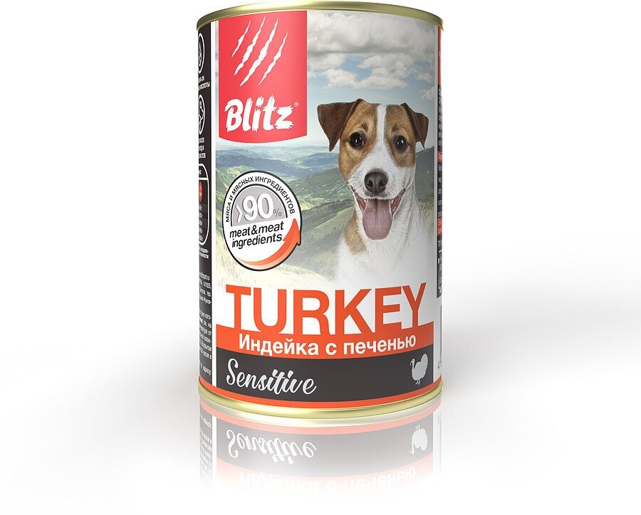 Лучшие цены. Blitz Sensitive Индейка с печенью консервированный корм для собак всех пород и возрастов Blitz Sensitive Dog Turkey Liver (Pate) Линия кормов Blitz Sensitive для собак Мясо индейки это источник не только высокоусвояемого животного белка, но и многих ценных микро- и макроэлементов, в том числе селена, принимающего большое участие в укреплении иммунной системы питомца. Магазины в вашем городе.
