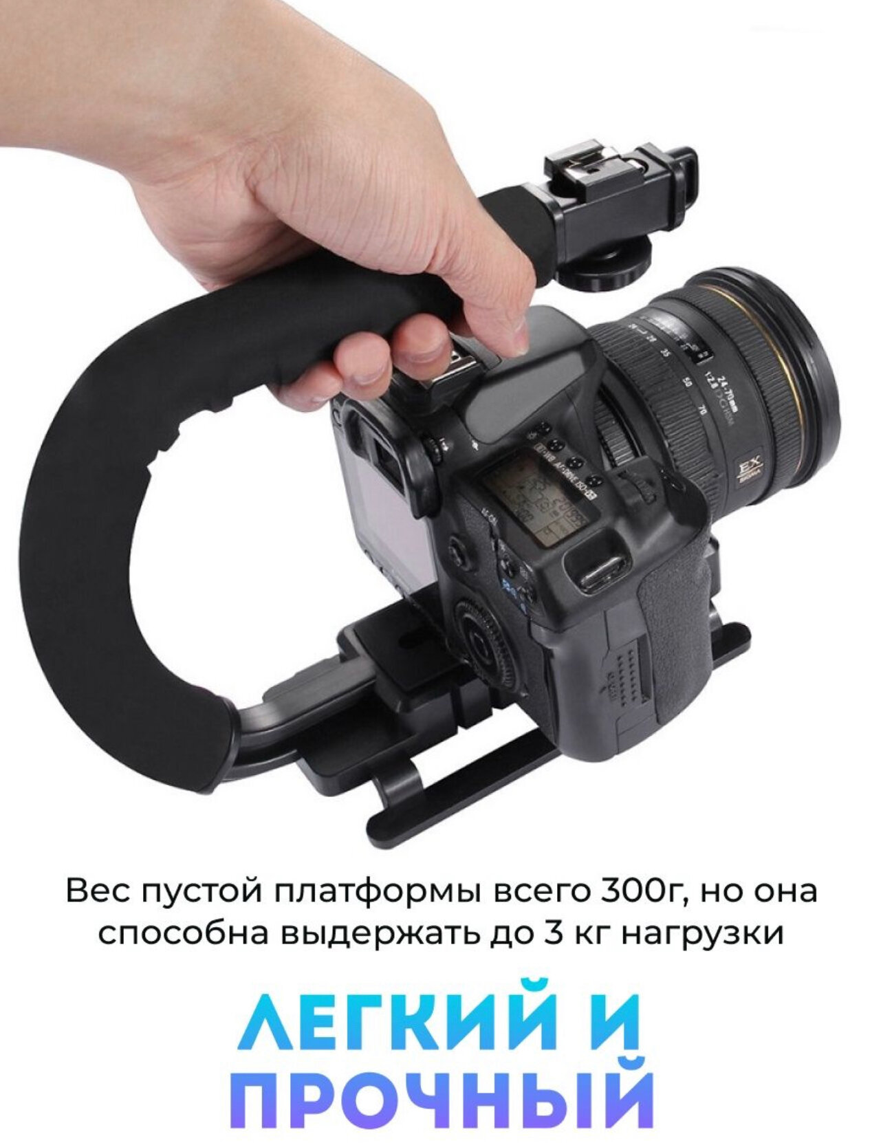Лучшие цены. Ручной стабилизатор для камеры и смартфона - идеальное решение, когда необходимо выполнить фото- видео съемку вместе с подсветкой и записью звука. Платформа для установки приборов фото видео съемки имеет прочную конструкцию и выполнена из ABS пластика, при этом масса изделия без обвесов составляет всего 300 грамм, поэтому Вы сможете снимать достаточно длительное время с рук, при этом не ощущая усталости в запястьях. Магазины в вашем городе.