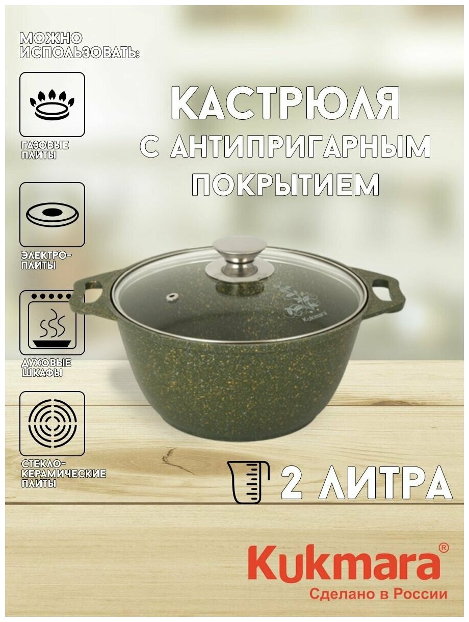 Кастрюли Кастрюля 2л Kukmara Кукмара стеклянная крышка Антипригарное покрытие Trendy style цвет malachite) к21tsml