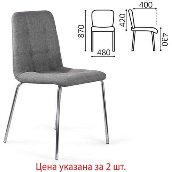 Стул Стулья Brabix комплект 2 шт. "Twins CF-011", хромированный каркас, ткань, серый (M-02), разобранные, 532767