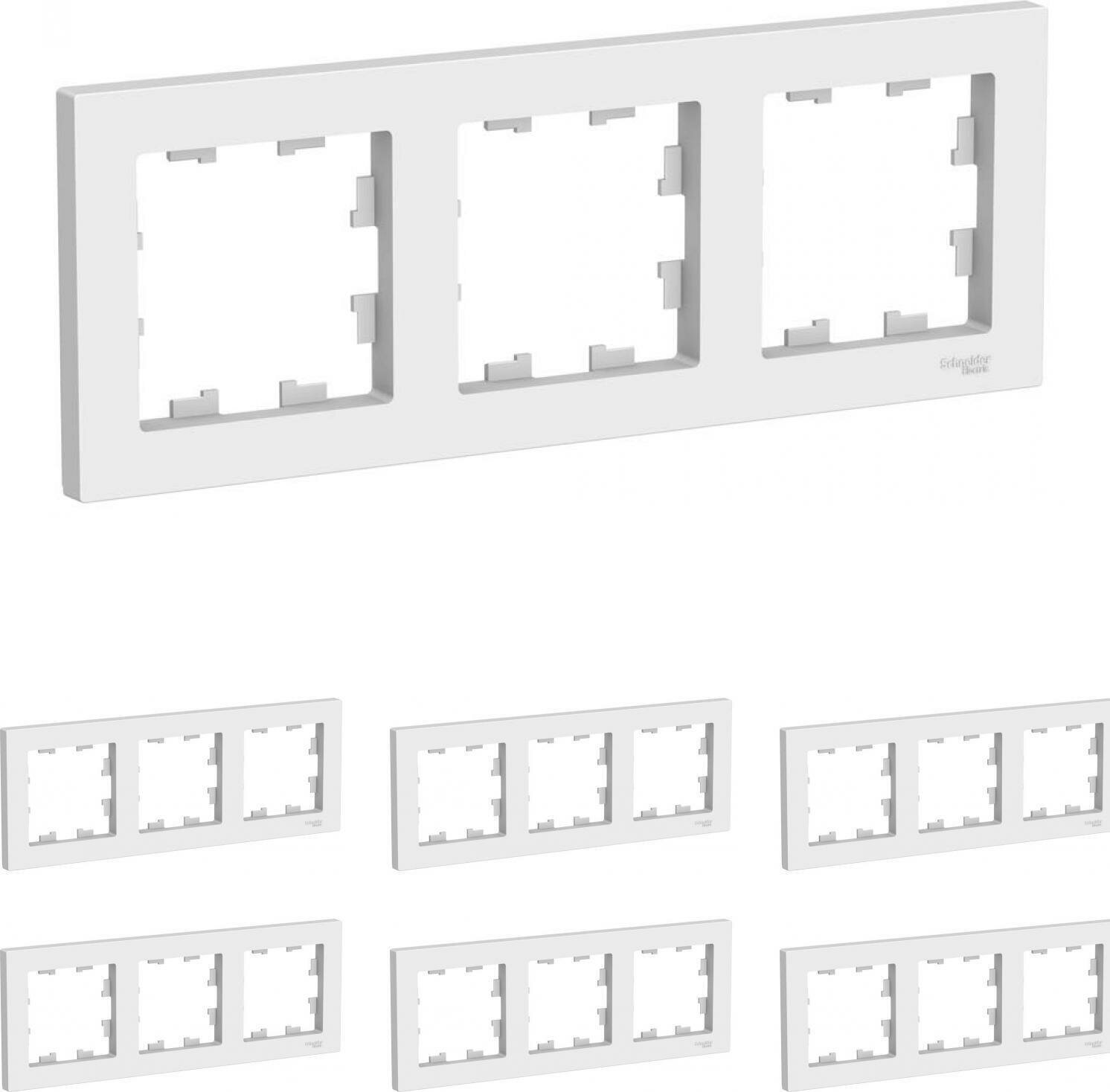 Розетки Рамка Schneider Electric AtlasDesign трехместная универсальная белая (комплект из 6 шт)