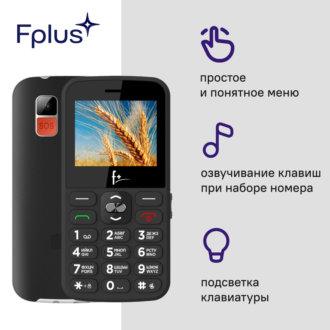 Мобильный телефон кнопочный F+ Ezzy5 Black, черный