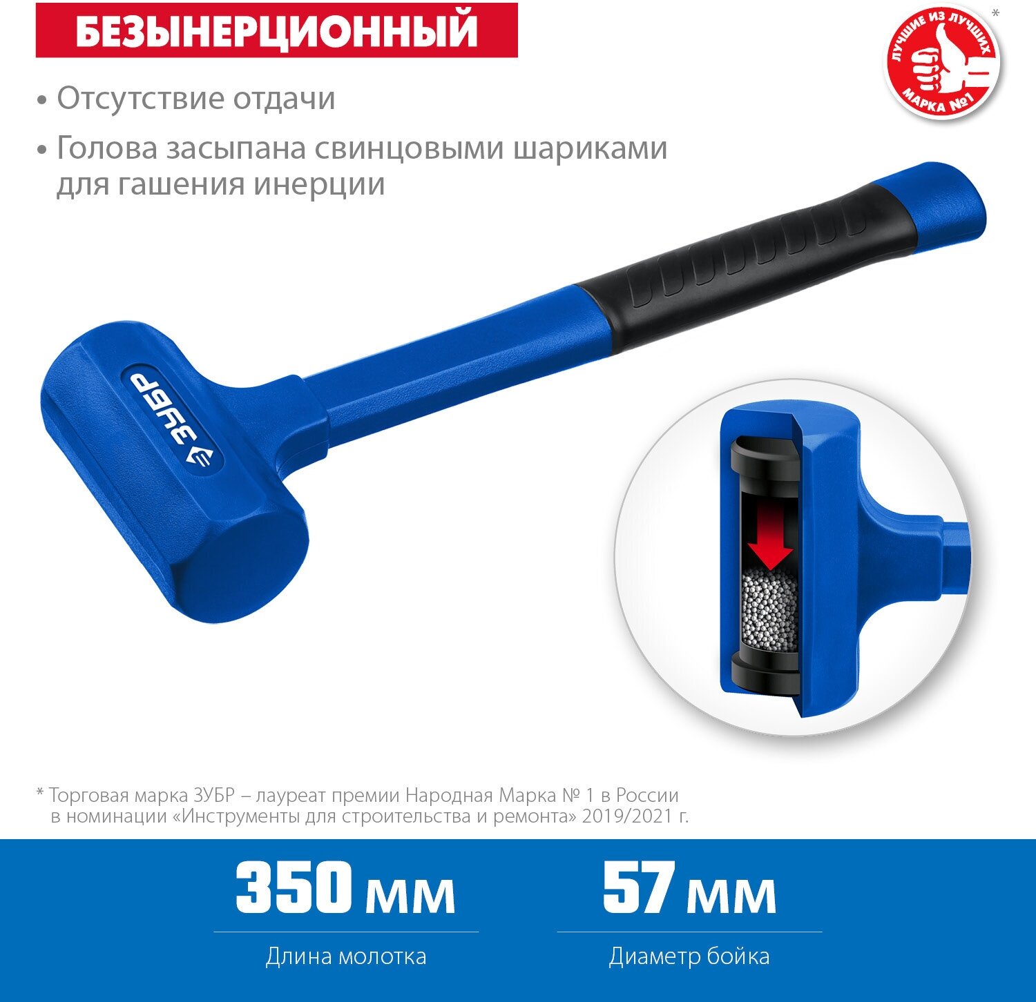 Молоток Молоток безынерционный Зубр 2049-1350, облитый эластомером, 57 мм, 1350 г Зубр 9527556 .