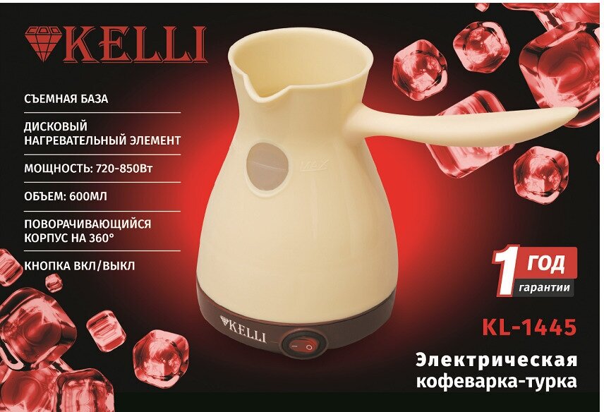 Турка электрическая Kelli KL-1445 кремовый на 4 чашки KL-1445 Кремовый .
