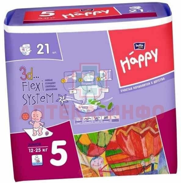 Подгузники для детей bella baby Happy Junior дышащие, размер 5 (вес 12-25 кг), 21 шт.