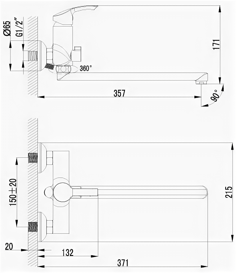 | Глубина струи | 371 мм / излив — 300 мм / |