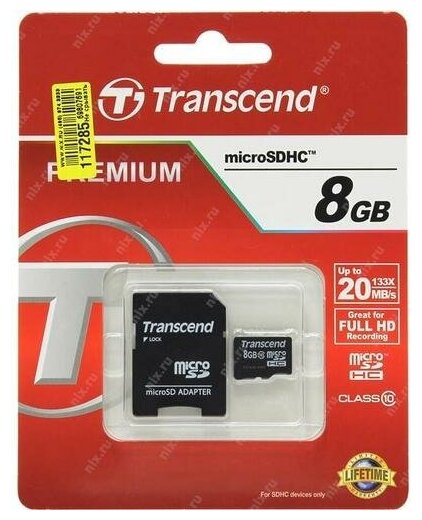 SD карта Transcend Premium TS8GUSDHC10 1 483 ₽ Подробнее