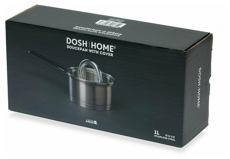Лучшие цены. DOSH | HOME Ковш Aries с крышкой 14 см 1 л - превосходная кухонная посуда для профессионального и домашнего использования. Изготовлена из первоклассной нержавеющей стали (cталь марки 304 - это аустенитная сталь с низким содержанием углерода. В России согласно ГОСТ её аналогом является сталь марки 18/10), толщина стенки 0,6 мм, подходит для интенсивного и длительного использования. Посуда снабжена толстым трехслойным сэндвичевым дном (алюминиевое сварное дно (толщина 5 мм). Магазины в вашем городе.