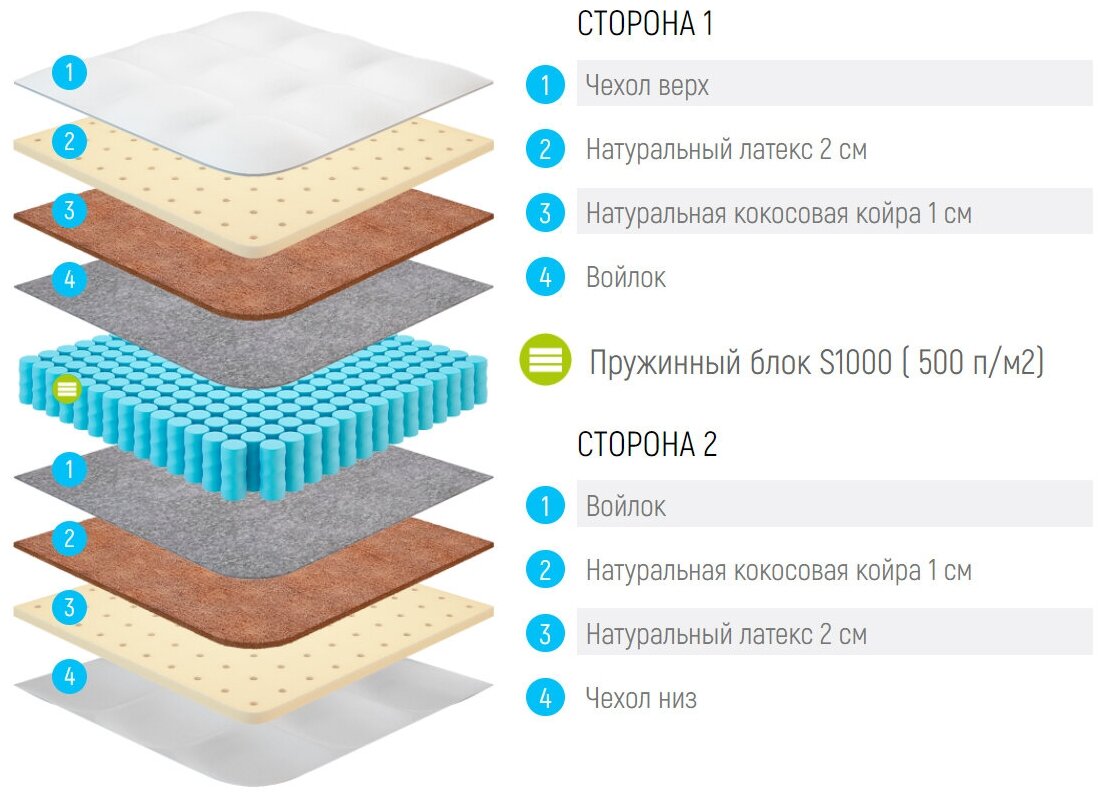 | Наполнитель | латекс, кокосовая койра, войлок |