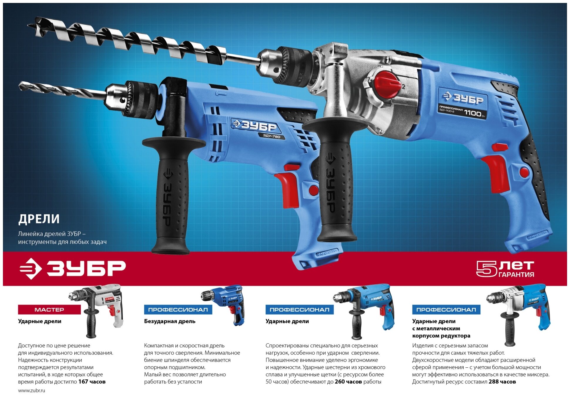 Дрель Зубр ЗДУ-1100-2 ЭРМКМ2 6 540 ₽ Подробнее