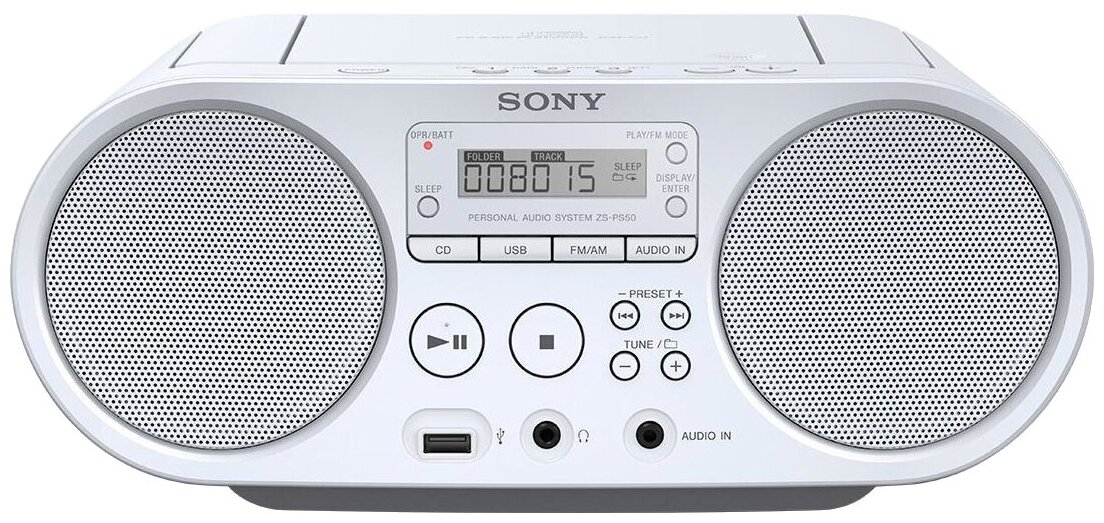 Аудиосистема Магнитола Sony ZS-PS50, белый ZSPS50W.CED