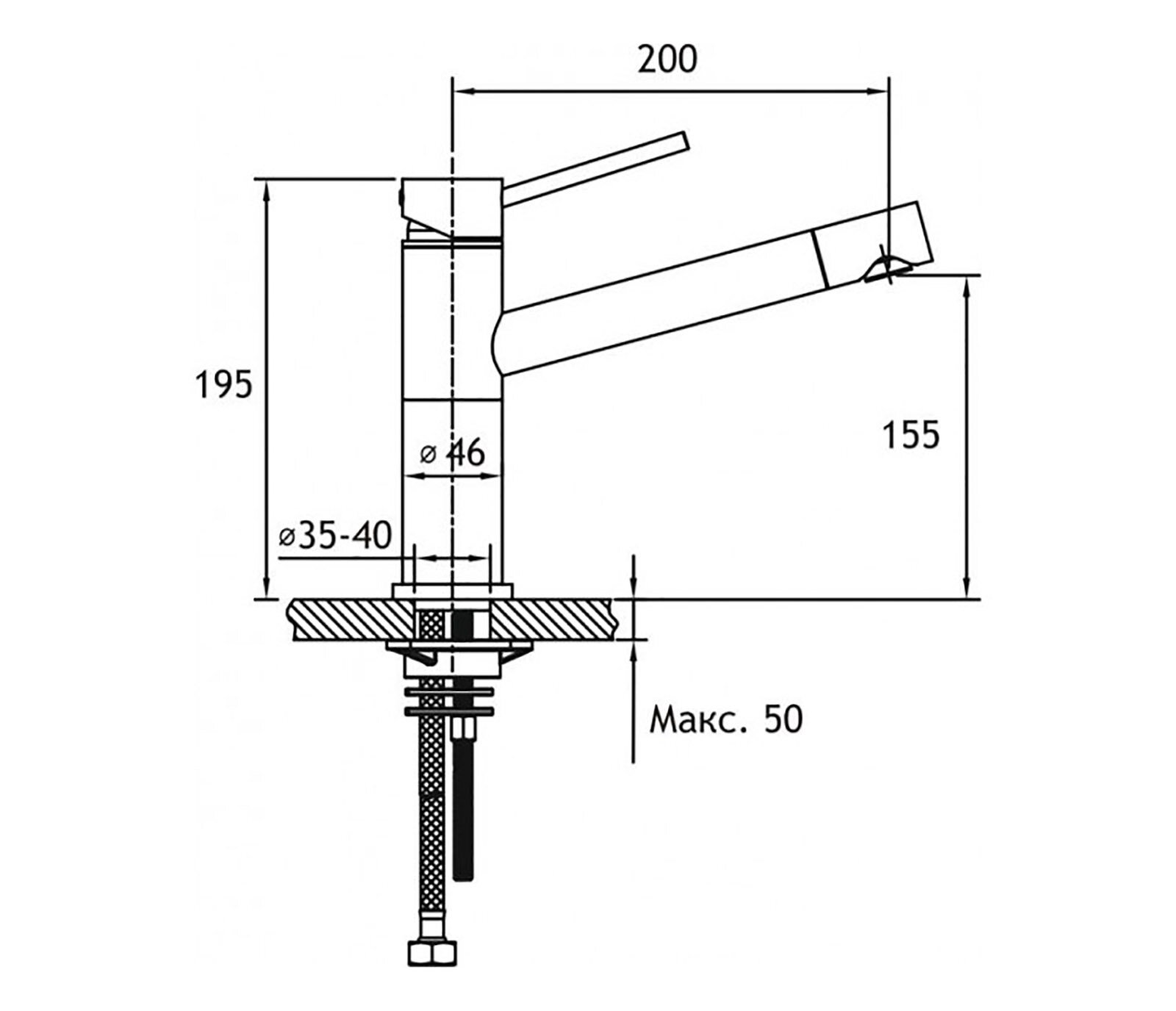 | Подвод воды | шланги / 400 мм / G 3/8" |