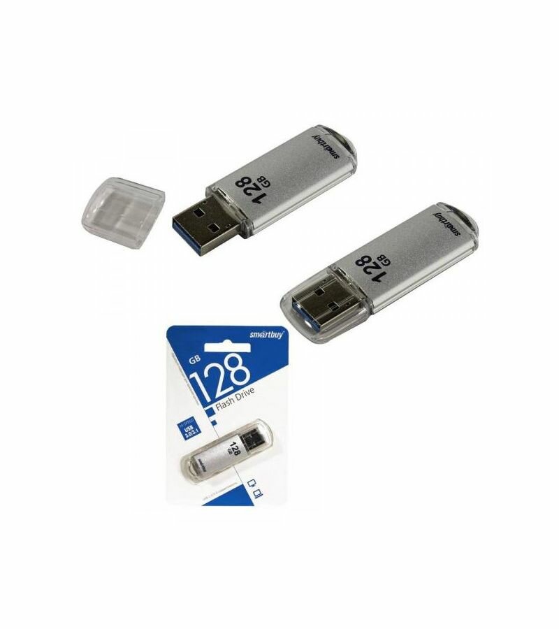 Флешка SmartBuy V-Cut USB 3.0/3.1 128 ГБ, 1 шт., серебристый