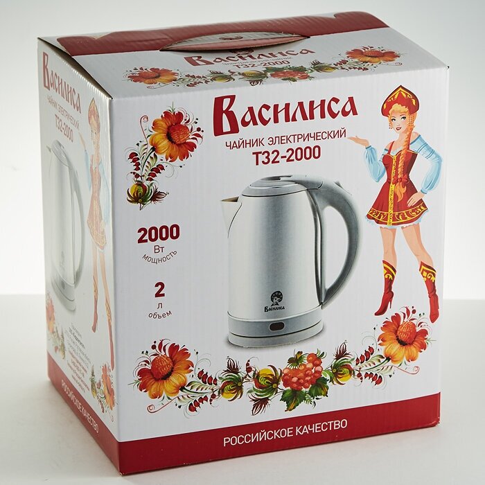 Электрочайник василиса Т32-2000 нерж/серый: мощность 2000 Вт объем 2 литра