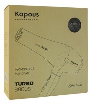 Профессиональный фен для укладки волос Kapous Turbo 3800ST Soft Touch черный 1613K