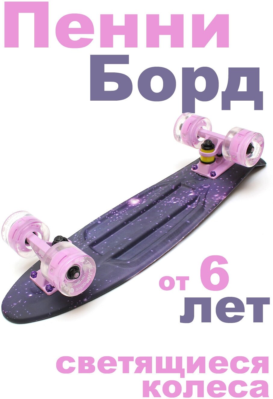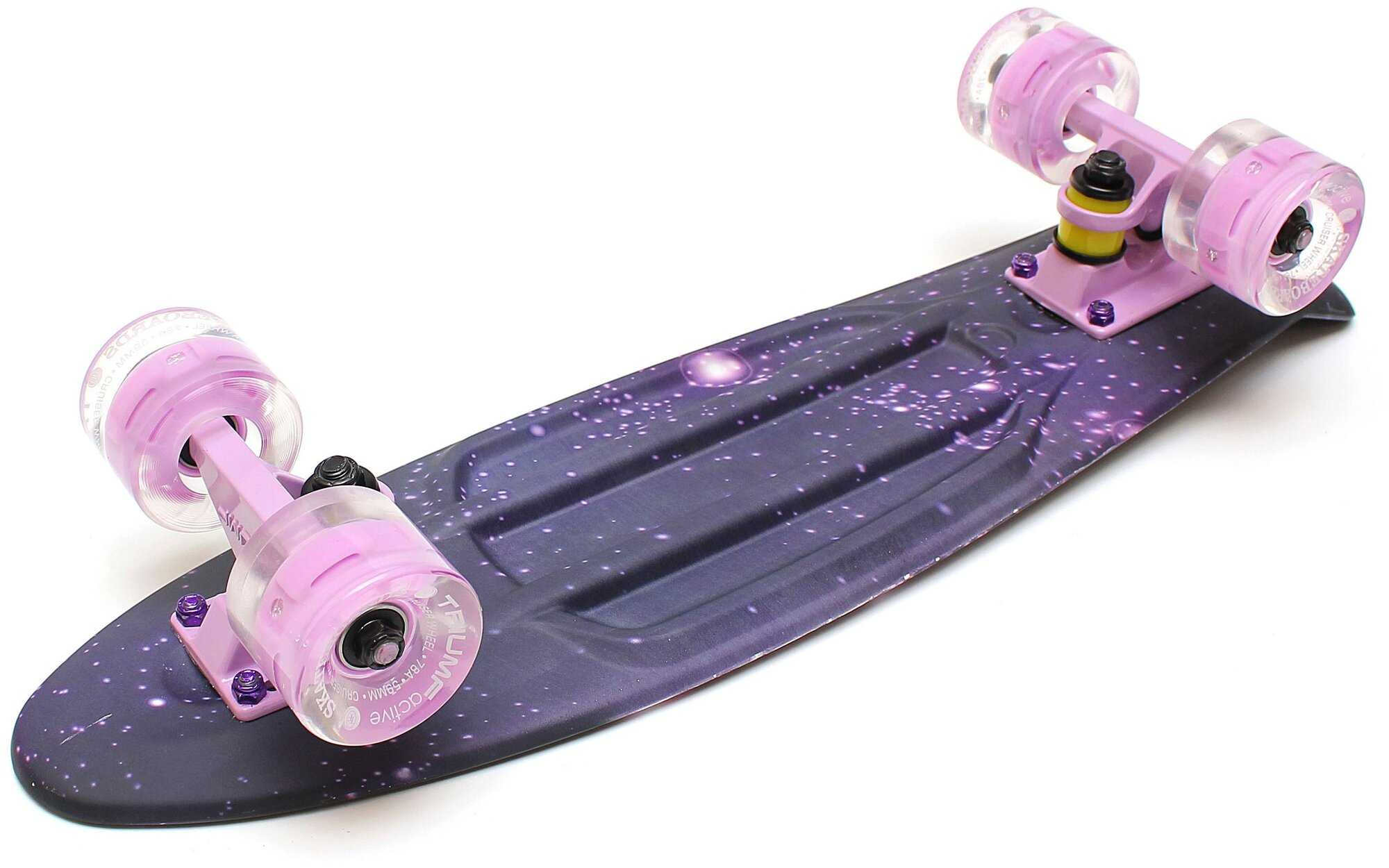 Скейтборд пластиковый (пенни борд) для детей и взрослых с принтом и светящимися колесами Triumf Active Space (космос) 22 дюйма
