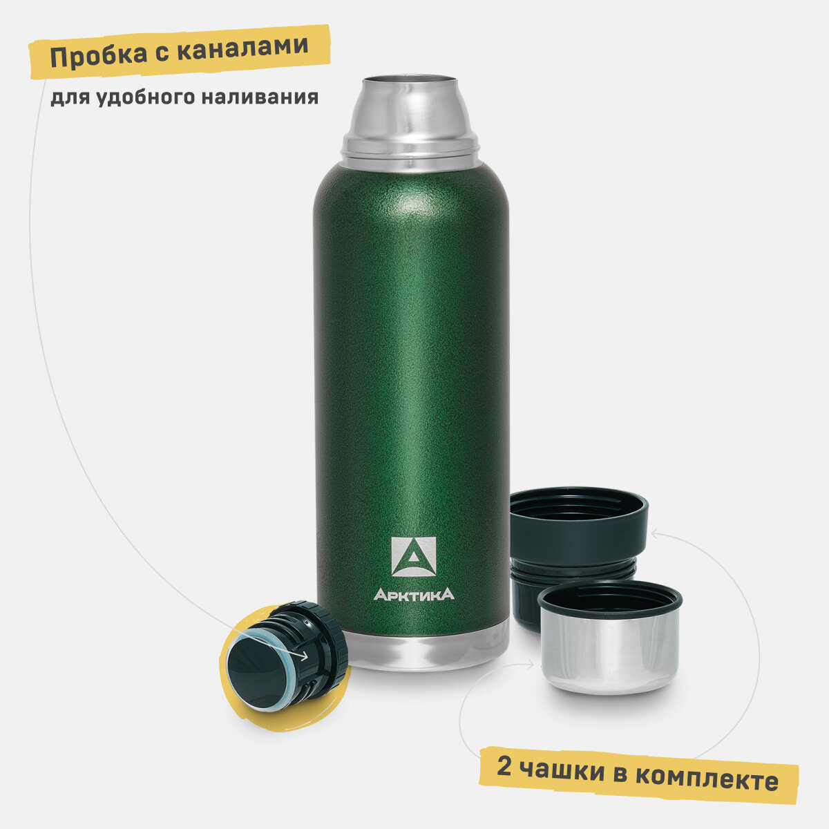 Термос для чая и кофе Арктика 106-1600 зеленый 1,6 литров с двумя чашками в комплекте 2 629 ₽ Подробнее