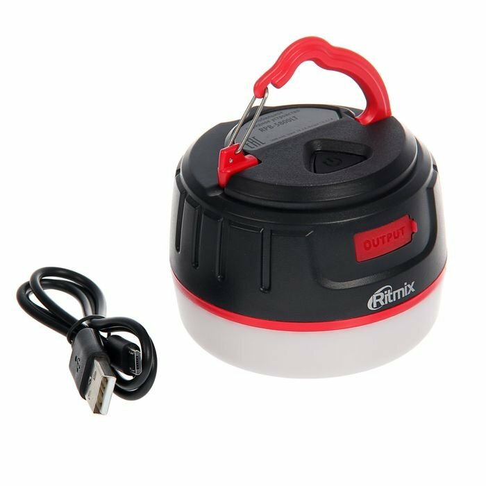 Фонарик Внешний аккумулятор RITMIX, USB, 5800 мАч, магнитное крепление, черно-красный