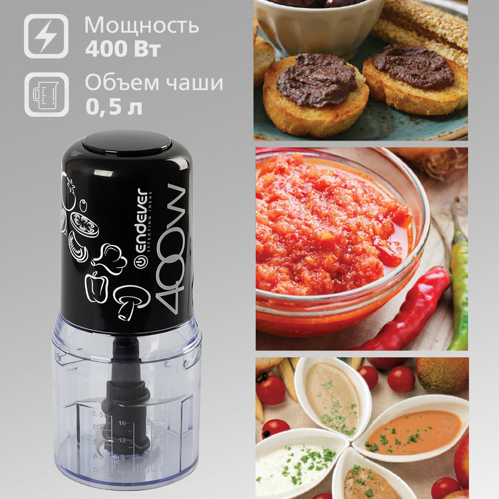 Измельчитель кухонный электрический Endever Sigma-63/ чоппер / 400 Вт / пластиковая чаша объемом 0,5 литр / 2 двойных лезвия