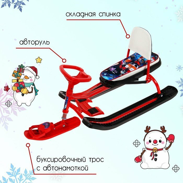 Лучшие цены. Снегокат «Тимка спорт 4-1 Галактический робот», ТС4-1/ГР Снегокат предназначен для перевозки детей по плотному снегу или льду, катанию с горок. Имеет сварную конструкцию из стальных труб и пластиковых элементов. Оснащён мягким сиденьем, обтянутым искусственной кожей с рисунком, складной спинкой и двухточечным ремнём безопасности. Оборудован буксировочным тросом с автоматической намоткой и системой амортизации, которая обеспечивает комфортную поездку по крутым горкам и неровным поверхностям. Магазины в вашем городе.