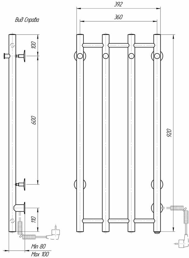Лучшие цены. нестандартный электрический полотенцесушитель, подключение электропровод с вилкой справа, секций 4, мощность 70 Вт, нагрев до 60°C, включение кнопка. Магазины в вашем городе.