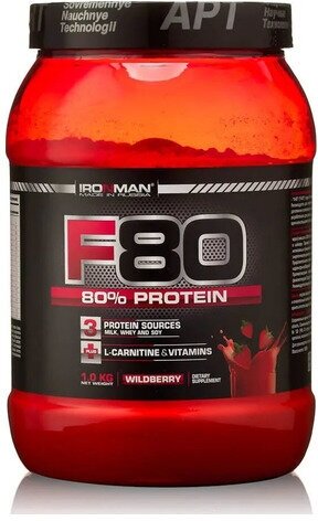 Лучшие цены. Протеин IronMan F-80 Земляника 1кг. Магазины в вашем городе.