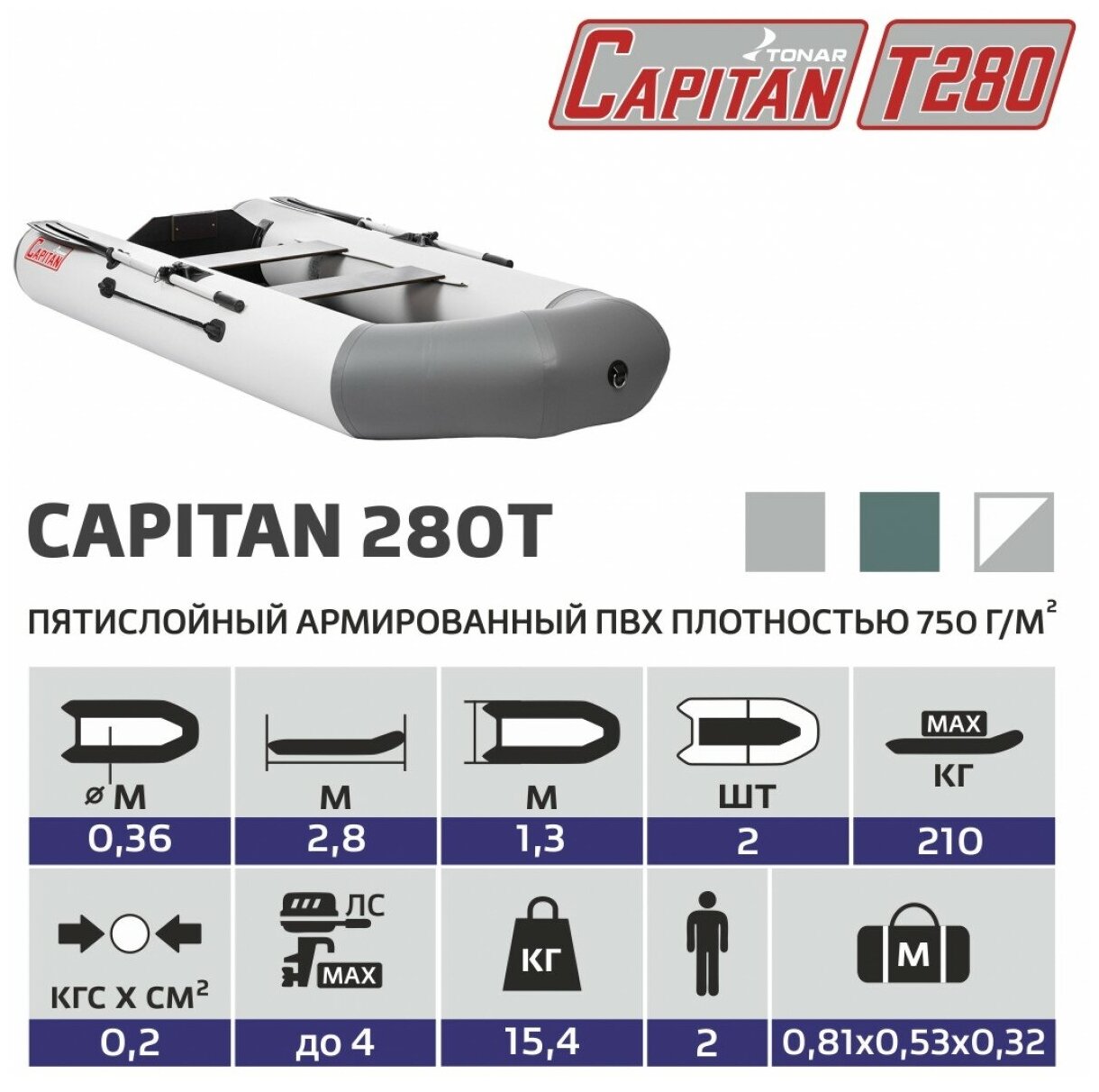 Надувные лодки Лодка Капитан 280Т бело-серый Тонар