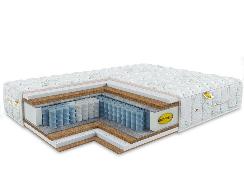 Лучшие цены. артикул 10731 Матрас Benartti Memory Mega Comfort Duo S1200 70x200 Состав матраса: Латекс натуральный 3 см Кокосовая койра 3 см Войлок 0,2 см Мультипакет S1200 (600 пруж./кв.м.) Войлок 0,2 см Кокосовая койра 2 см Латекс натуральный 3 см Кокосовая койра 1 см. Магазины в вашем городе.