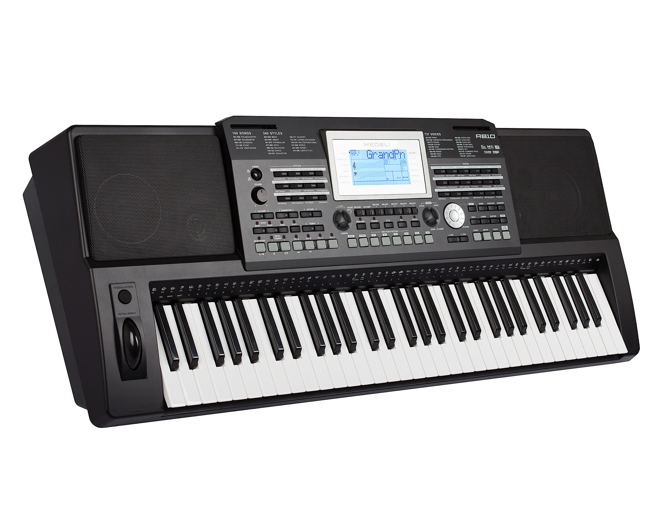 Medeli A810 синтезатор, 61 клавиша, 128 полифония, 737 тембров + 50 users, 240 стилей + 10 use