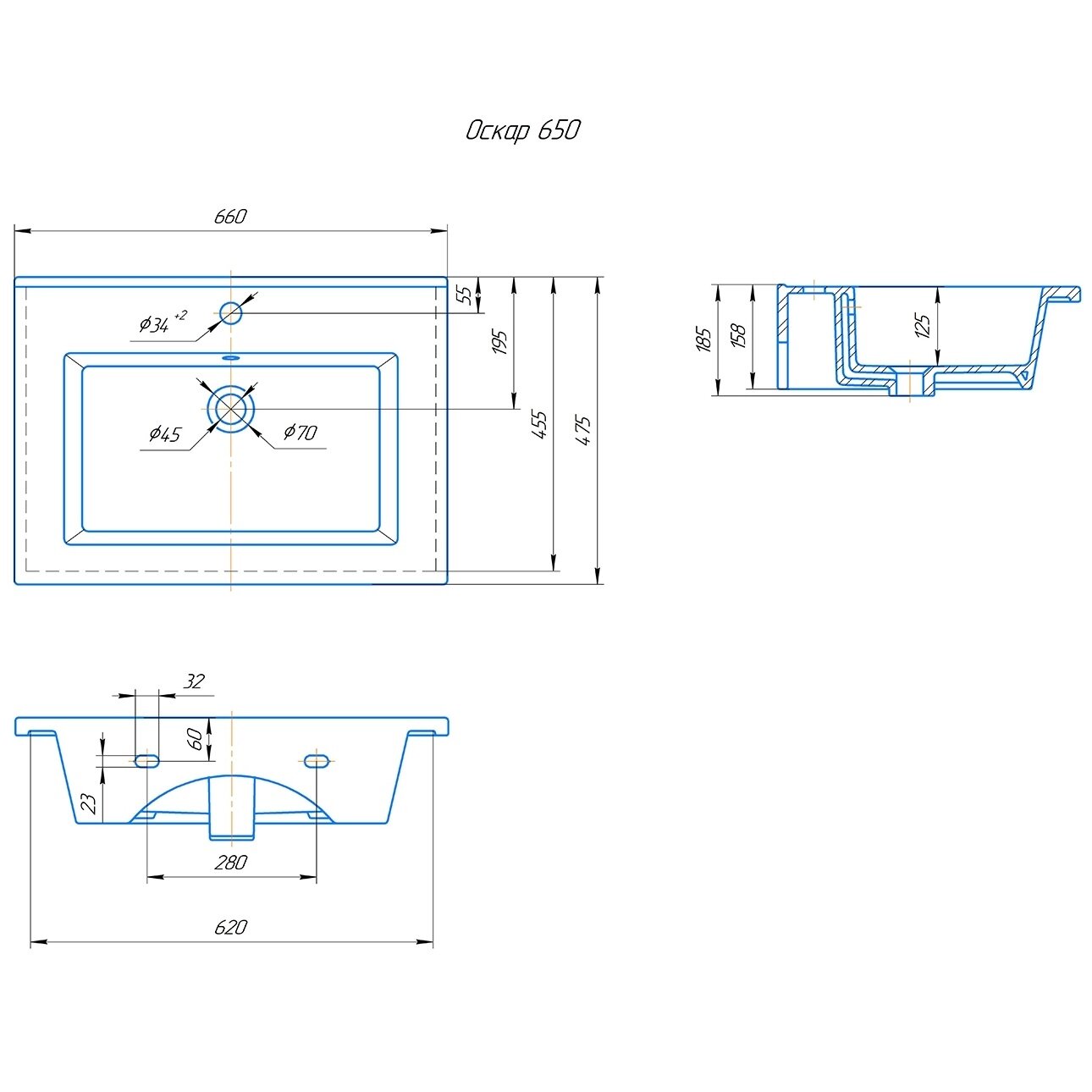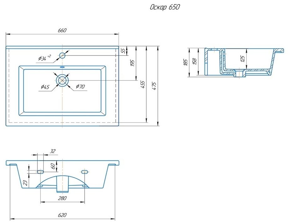 Раковина для ванной Кировит Оскар 650 (Вн Крв27)