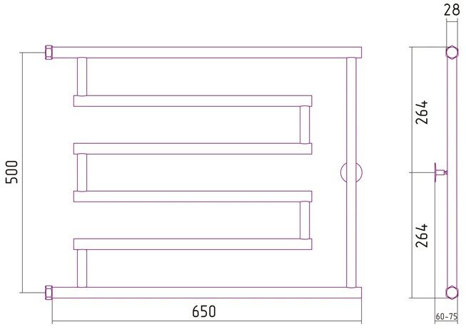 Полотенцесушитель водяной High-Tech model "L" 500х650