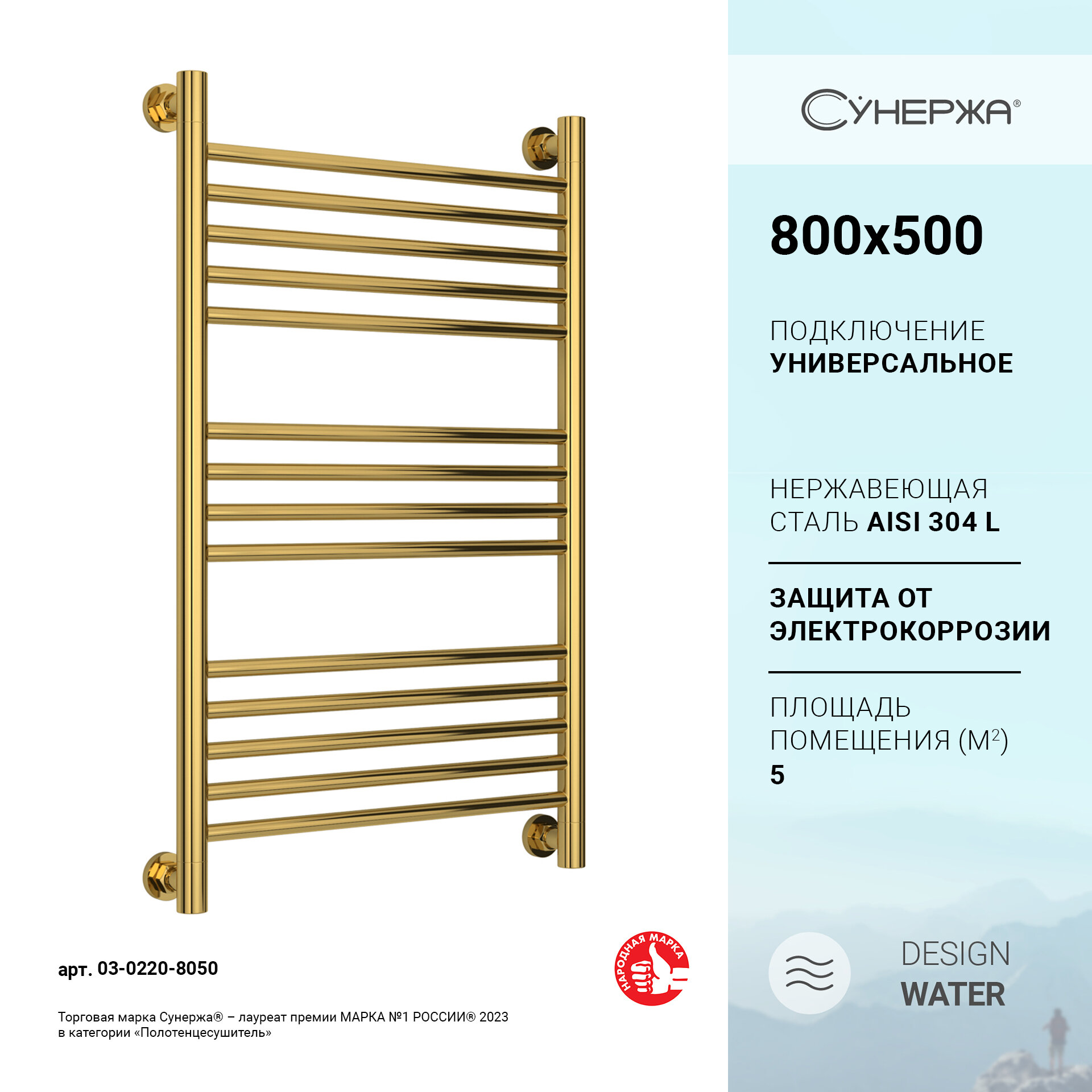 Полотенцесушитель Водяной полотенцесушитель Сунержа Богема+ прямая 800x500 золото