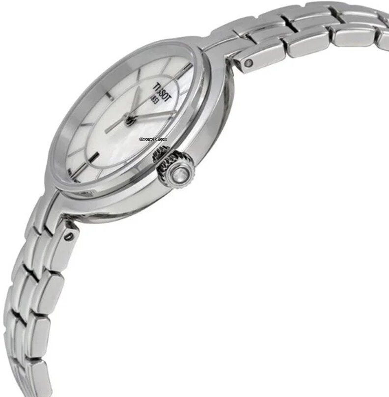 Швейцарские кварцевые часы Tissot Flamingo T094.210.11.111.00 на стальном браслете, с водозащитой 5 бар и международной гарантией от производителя
