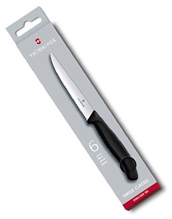 Набор из 6 ножей для стейков VICTORINOX Swiss Classic с серейторной заточкой, лезвие 11 см, чёрная рукоять, в картонной коробке 6.7233.6