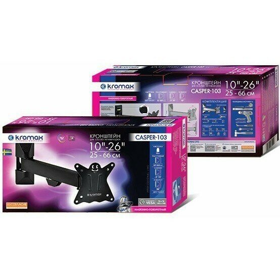 Кронштейн настенный Kromax CASPER-103 Kromax_20170 10-26", макс. 15кг, поворот и наклон, черный 1 017 ₽ Подробнее