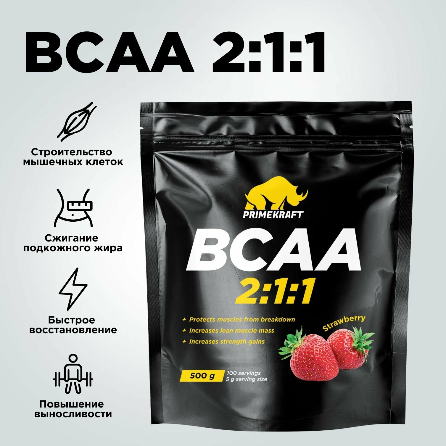 Аминокислоты Prime Kraft BCAA 2:1:1 500g, Комплекс ВСАА, Аминокислота БЦАА, Аминокислотный комплекс, 500 грамм (Клубника)