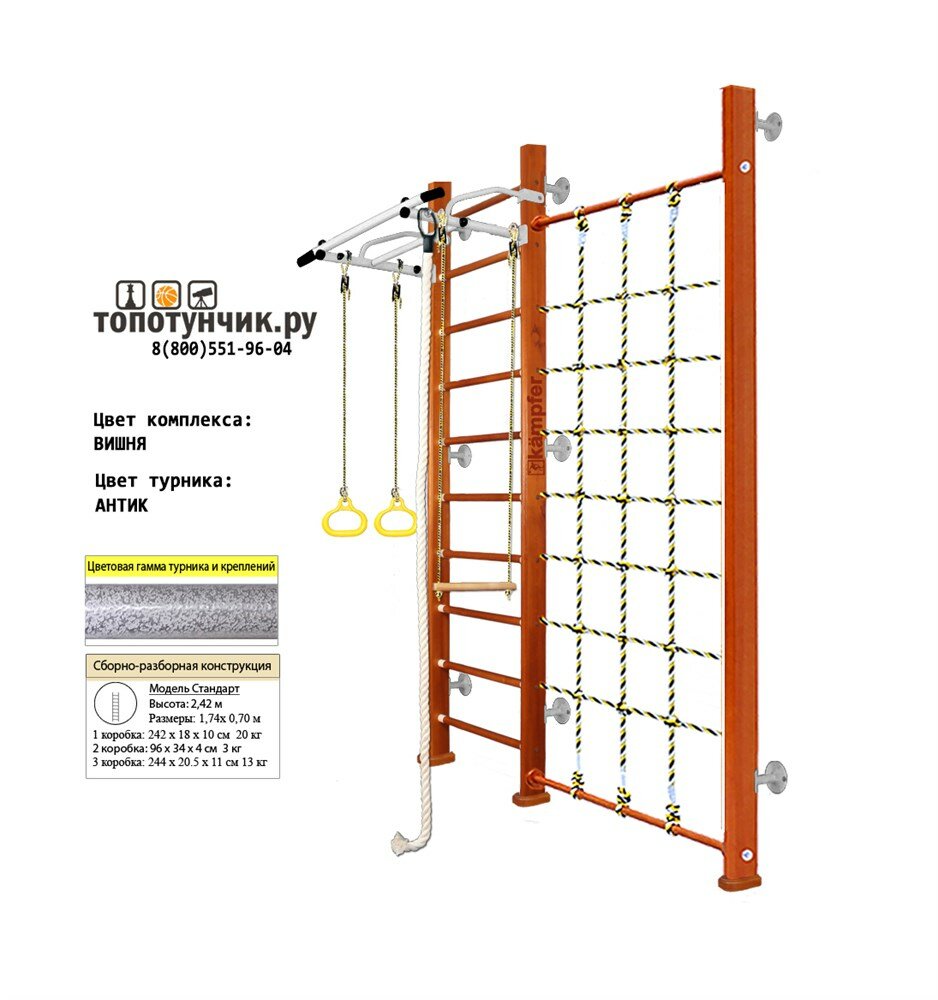 Шведская стенка Kampfer Winner Wall (жемчужный, вишневый, шоколадный, ореховый, натуральный, без покрытия) стандарт 27 460 ₽ Подробнее