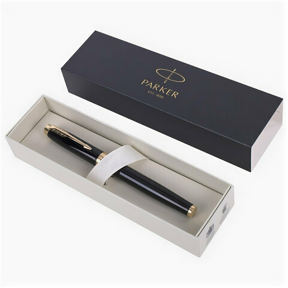 Ручка перьевая Parker "IM Core Black Lacquer GT", корпус черный глянцевый лак, позолоченные детали, синяя (1931645)